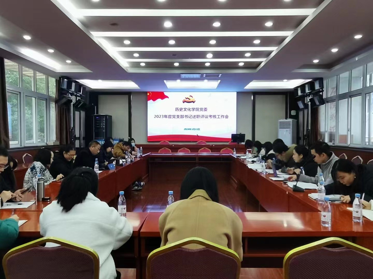 2024年1月11日上午,历史文化学院党委召开了2023年度党支部书记述职评议考核工作会,全面考核党支部书记年度履职情况,深入查摆短板弱项,明确下一步工作举措,进一步压紧压实党支部书记抓基层党建责任,扎实推进党建与事业高质量融合发展。学院党委书记罗庆昌、学院党委委员、党支部书记、党员代表和师生群众代表近30人参加会议。会议由学院党委副书记、纪委书记张静主持。