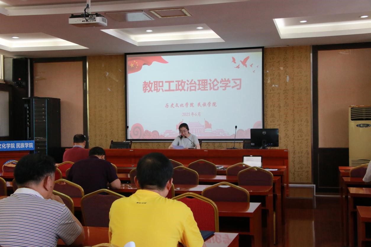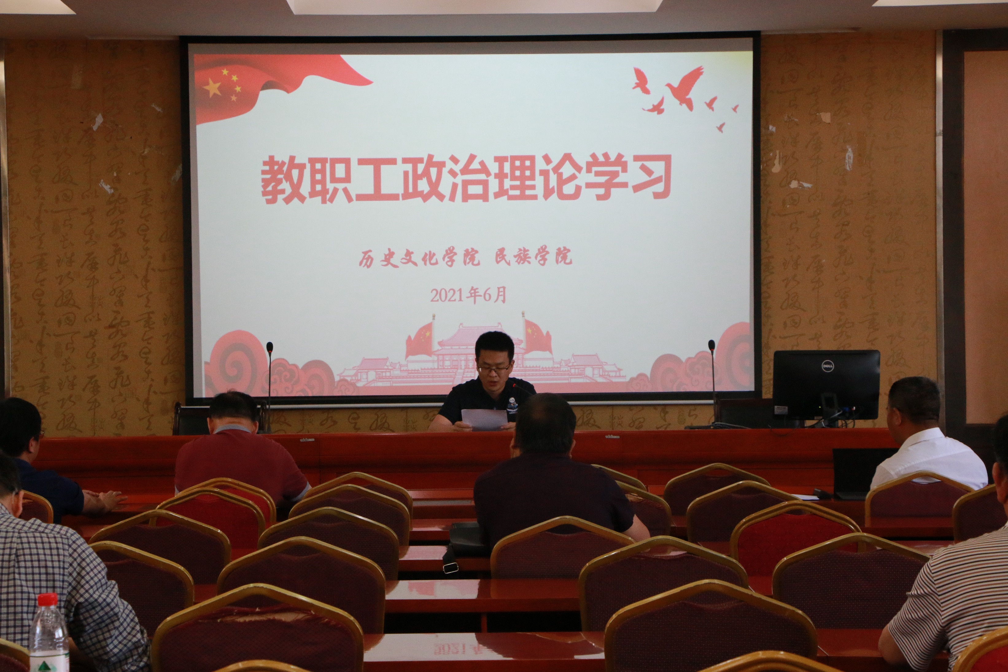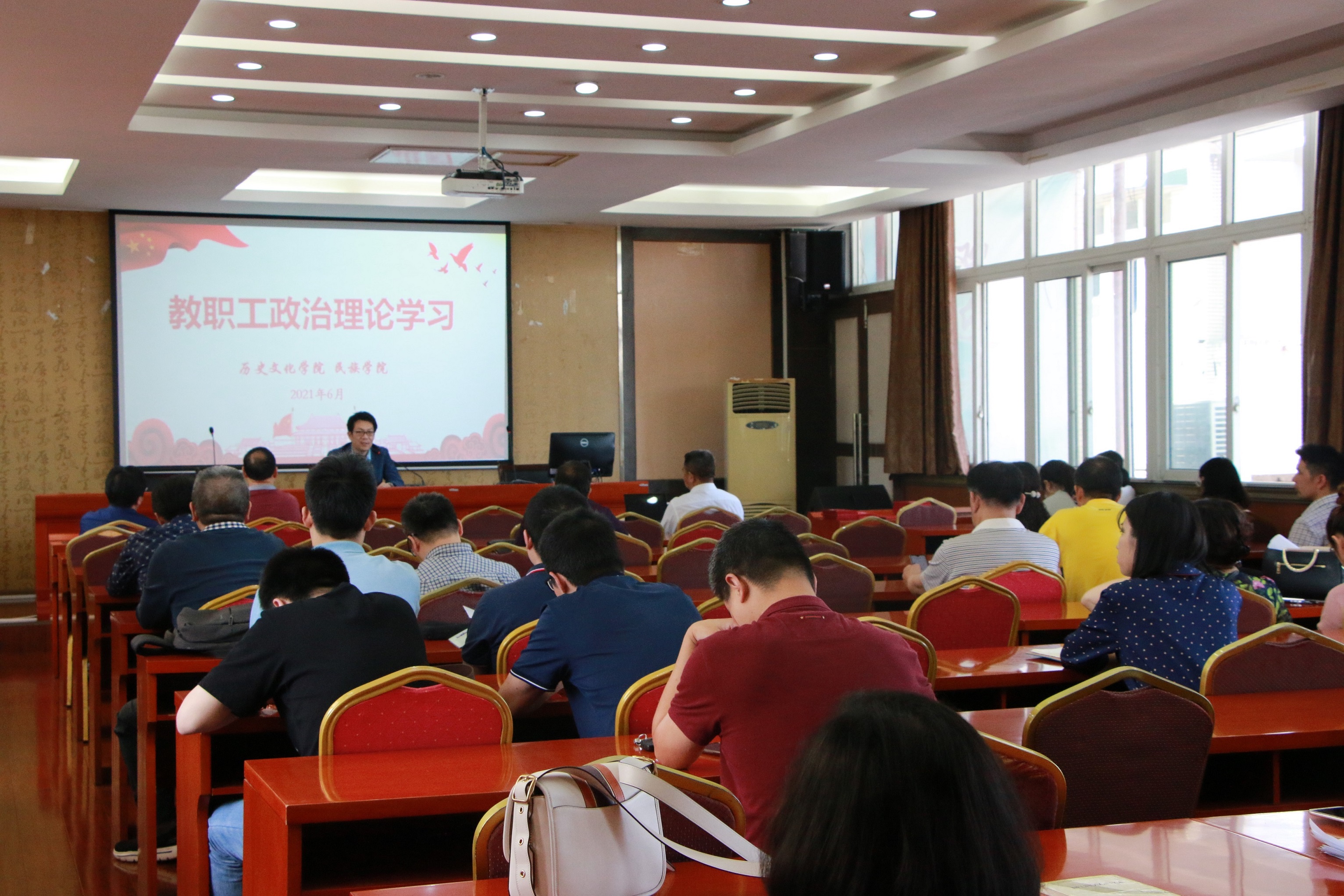 2021年6月4日下午,历史文化学院党委组织全院教职工在荟文楼7楼报告厅进行2021年第六次政治理论学习。此次大会的主要内容是传达学校近期工作会议精神,汇报学院目前主要工作开展情况,并开展政治理论学习。会议由学院党委书记罗庆昌主持。