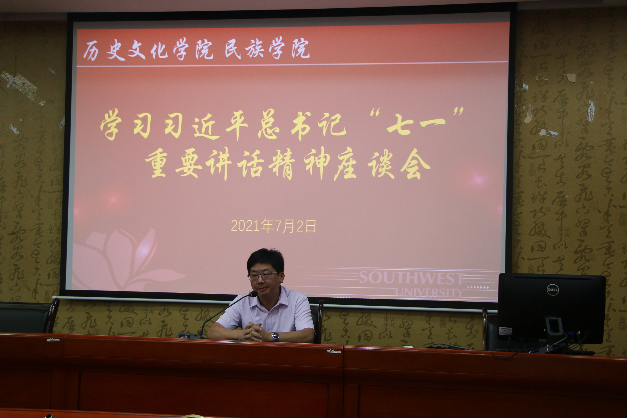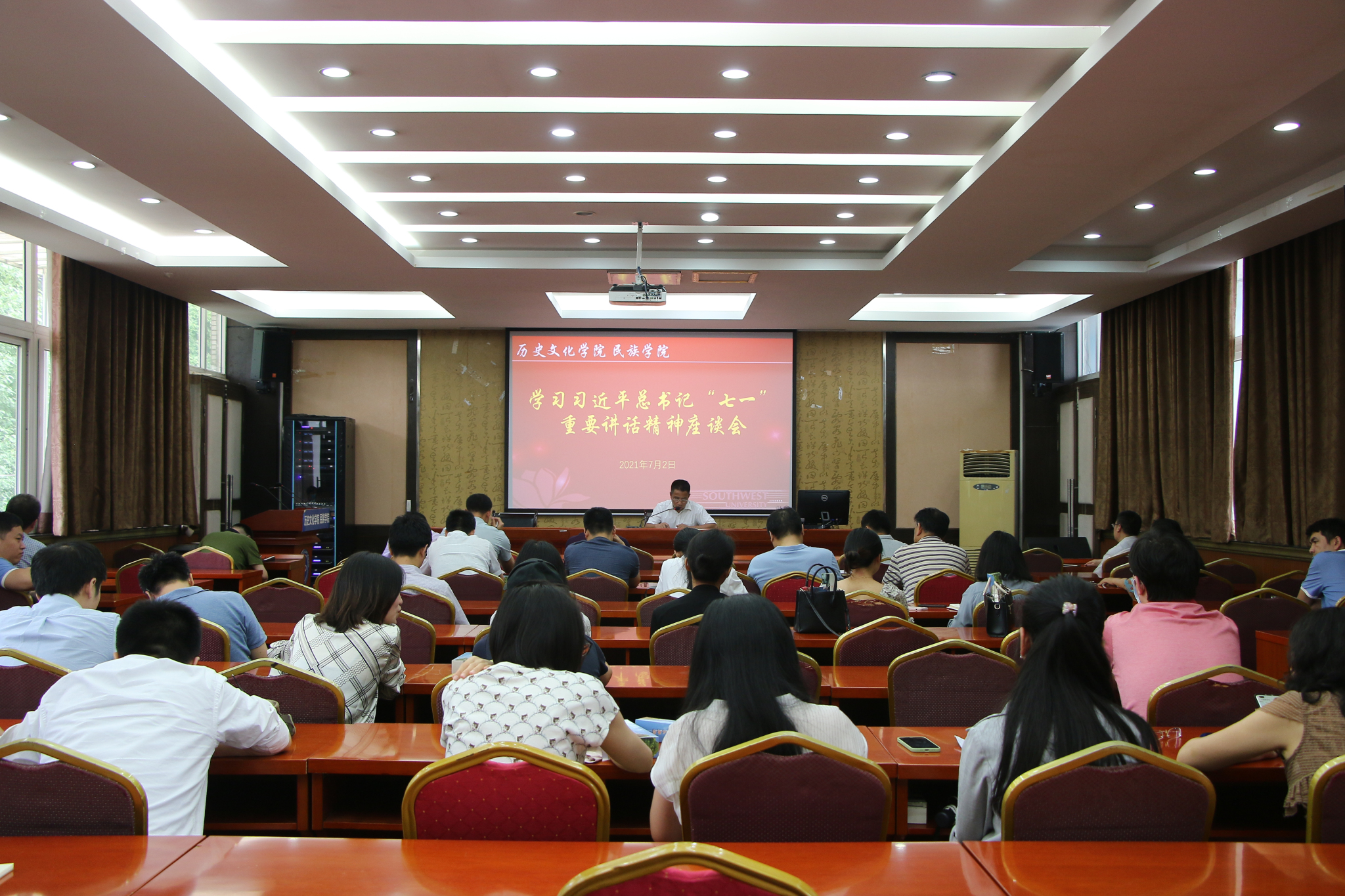 7月1日上午,历史文化学院党委在组织全院教师在学院七楼报告厅和全体学生分别在九教442教室、学院520会议室集中收看了庆祝中国共产党成立100周年大会并认真聆听了习近平总书记在庆祝中国共产党成立100周年大会上的重要讲话后,7月2日下午专门组织全体教师集中开展学习习近平总书记在庆祝中国共产党成立100周年大会上的重要讲话精神。