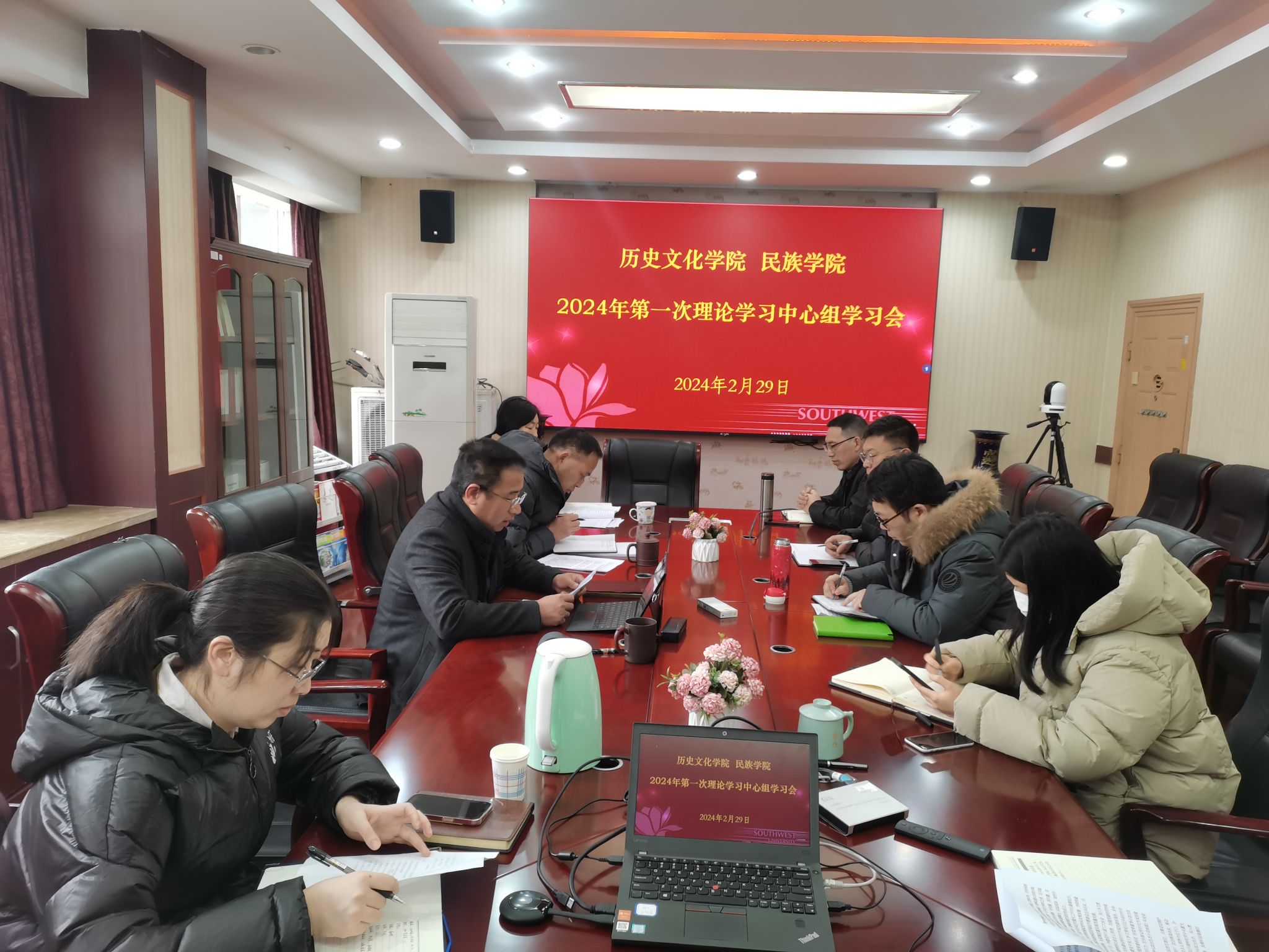 为深入学习领会习近平总书记关于党的建设的重要思想、对重庆作出的重要指示批示精神,2月29日下午,历史文化学院党委召开了2024年第一次党委理论学习中心组学习会。会议由学院党委书记罗庆昌主持,两委委员参加学习。