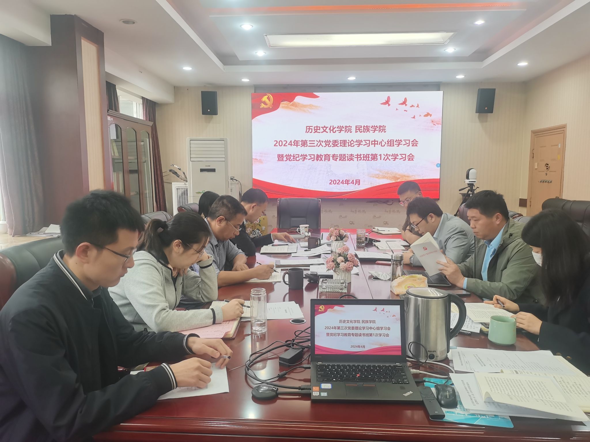 2024年4月24日上午,学院党委召开2024年第3次理论学习中心组学习会暨党纪学习教育专题读书班第1次学习会。会议由学院党委书记罗庆昌主持,学院党委委员参加。