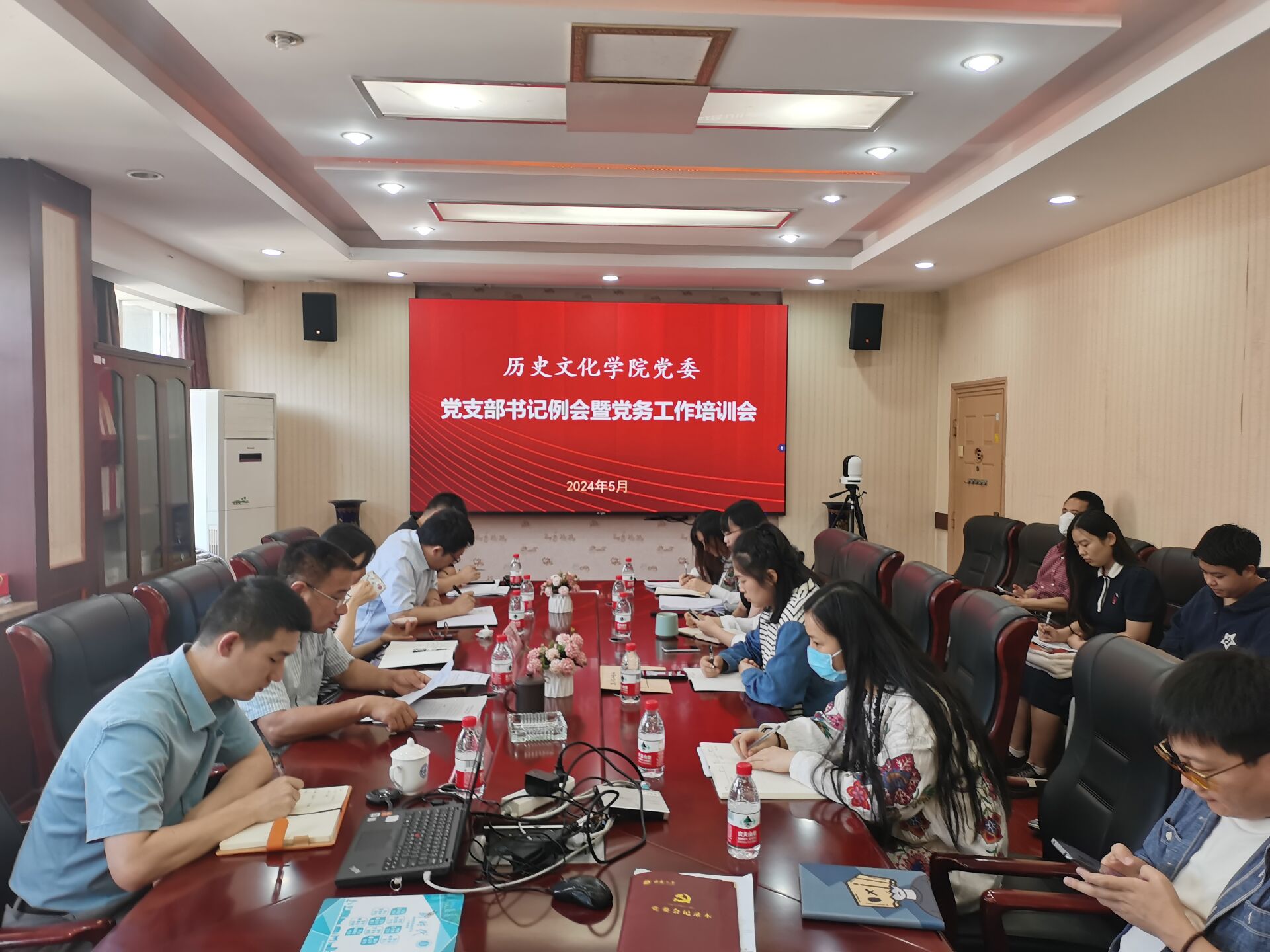 2024年5月13日下午,学院党委召开2024年第3次党支部书记工作例会及业务工作培训会,学校组织部党员教育与信息科科长贾彤辉莅临指导,学院党委书记罗庆昌、党委副书记、纪委书记张静,全体党支部书记及部分支部委员参会。会议由学院党委书记罗庆昌主持。