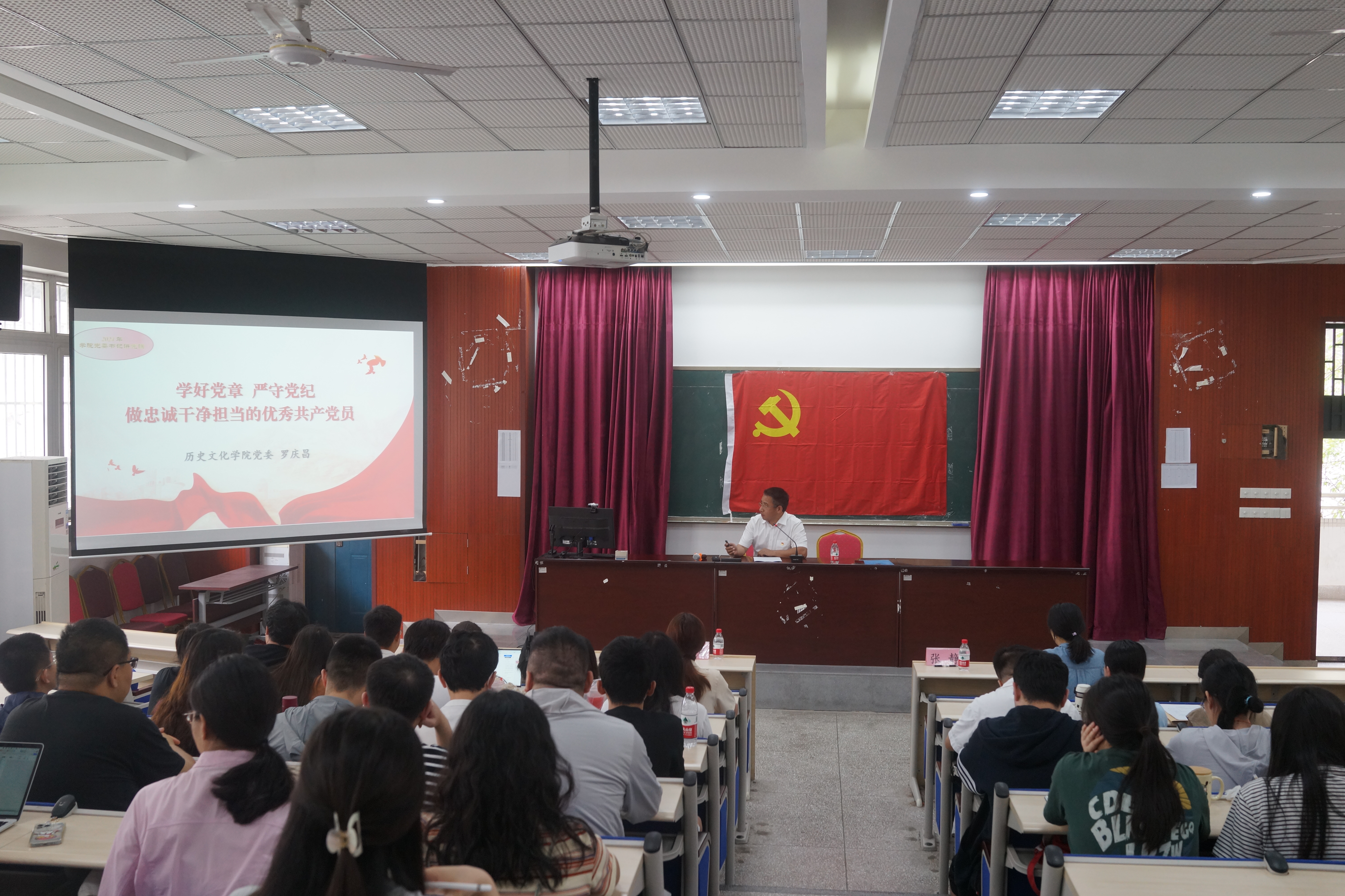 为切实增强毕业生党员廉洁自律意识,筑牢遵纪守法、廉洁从业思想道德防线,让廉洁自律内化于心、外化于行,5月31日下午,历史文化学院党委举行以“学纪守纪铸牢忠诚品格 知行合一勇做青年先锋”为主题的2024年毕业生党员学习教育活动。学院党委书记罗庆昌,党委副书记、纪委书记张静,专职组织员周燕,以及含全体毕业党员在内的140余名党员参加活动。