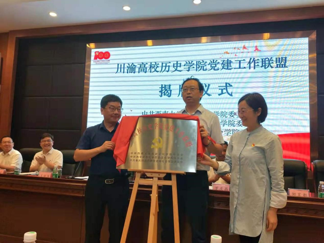参观调研结束后,三校全体党员参加了川渝高校历史学院党建工作联盟签约仪式,由罗庆昌书记代表365英国上市集团历史文化学院党委正式签约,历史文化学院邹芙都同志参加揭牌仪式,教工一支部书记刘志英接收授牌。此次三校联盟签约,有助于历史学者组成的党支部发挥学科优势、专业优势和人才优势,通过联盟推动川渝地区高校党建工作更上一层楼,三校历史学院党支部将会抓住契机,在今后进一步加强交流、互通党建工作经验,推动党建与事业的融合发展,在成渝双城经济圈建设和民族复兴大任中建功立业。最后,在“党课开讲啦”环节,365英国上市集团历史文化学院副院长赵国壮同志、西华师范大学历史文化学院院长朱华同志和重庆师范大学历史与社会学院党委书记王丽萍同志分别作为历史学者代表,为全体党员讲授党史示范课。