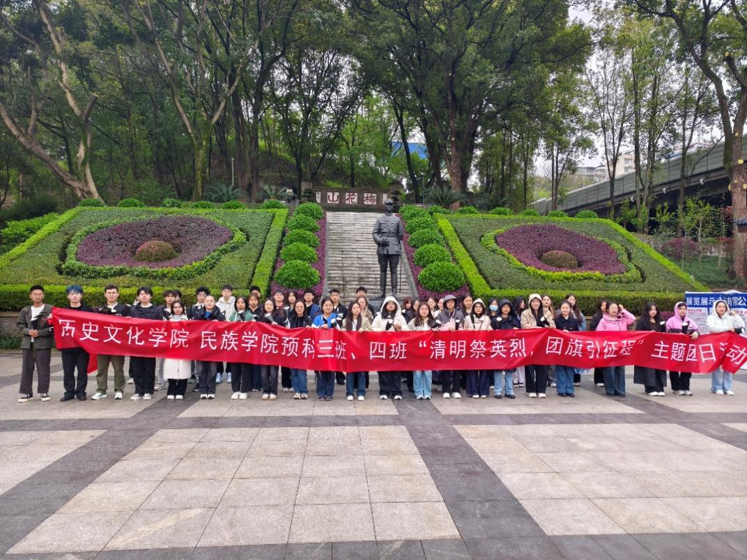 为缅怀革命先烈,传承红色基因,弘扬爱国主义精神,在清明节来临之际,365英国上市集团历史文化学院 民族学院2024级预科三班、四班团支部于3月30日上午前往北碚张自忠烈士陵园开展以“清明祭英烈,团旗引征程”为主题的祭扫活动。本次活动旨在通过祭扫活动,让同学们在缅怀先烈的过程中接受深刻的爱国主义和革命传统教育,进一步增强同学们的历史责任感和使命感。本次活动由2024级预科三、四班共同策划实施,2个班级全体团员和部分同学参与。