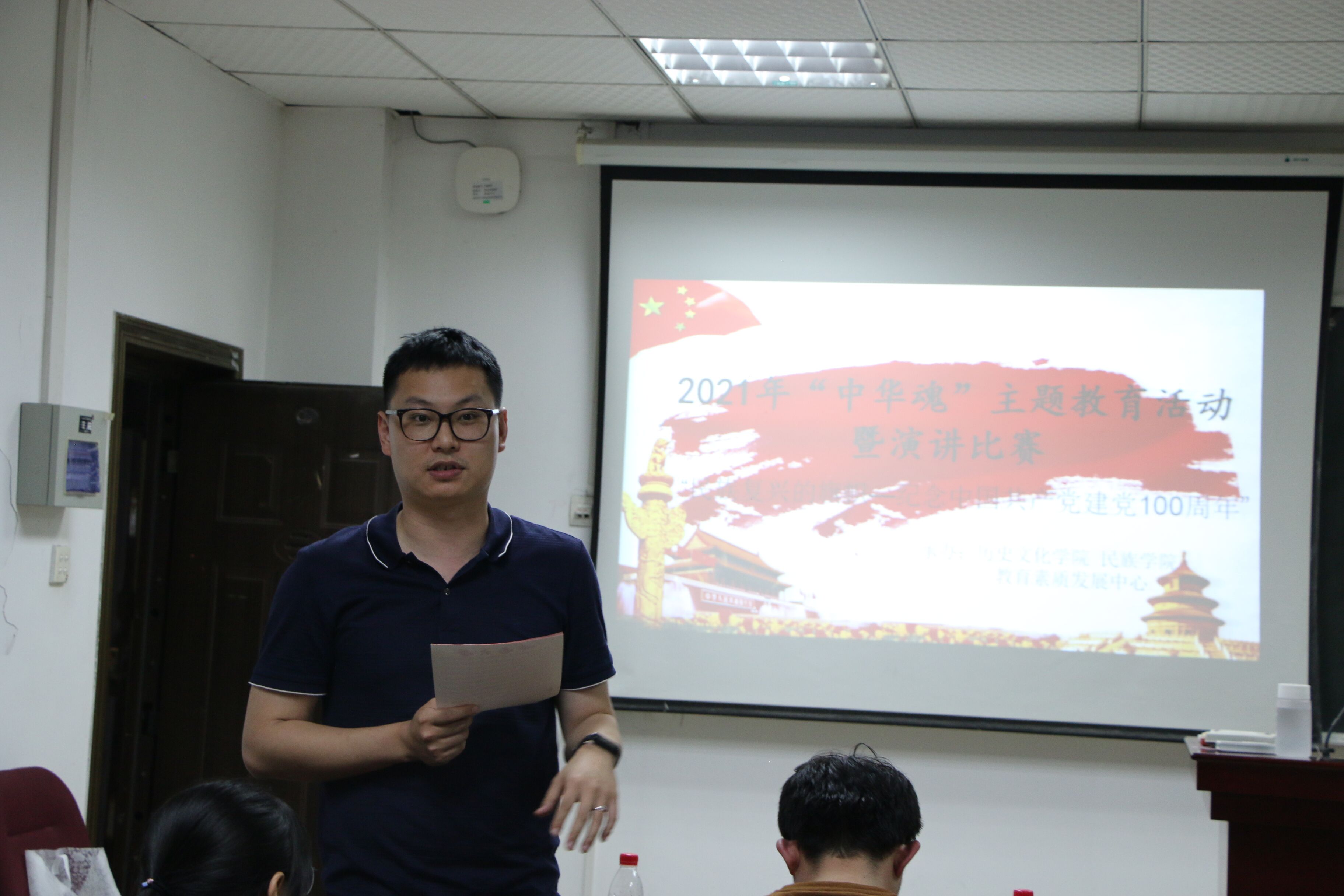 追忆历史,赞颂今朝!为庆祝建党100周年,提升青年学子的党性修养及民族自豪感,我院于5月21日在九教419室举办中华魂之民族复兴的旗帜主题教育活动暨演讲比赛,9位选手同台竞技,用诚挚的声音致敬祖国。学院党委副书记罗朝斌老师、团委书记李立老师莅临指导,张亮博学长、黄涛学姐、陈晰月学姐担任评委。
