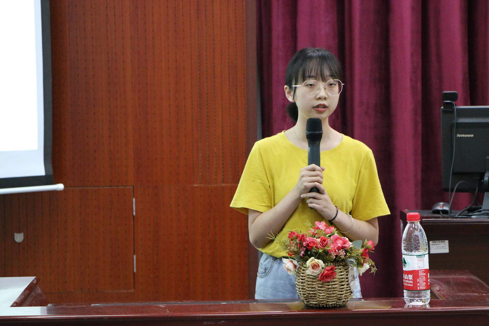 随后,本科2018级黄涛同学作为2020年暑期社会实践优秀队伍代表进行经验分享。她从社区状况、活动过程、活动内容、线上线下联动等几个方面做了分享,并希望同学们可以在活动中做到务实、热情。