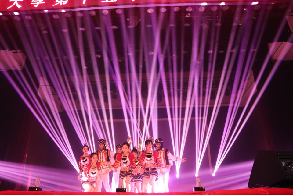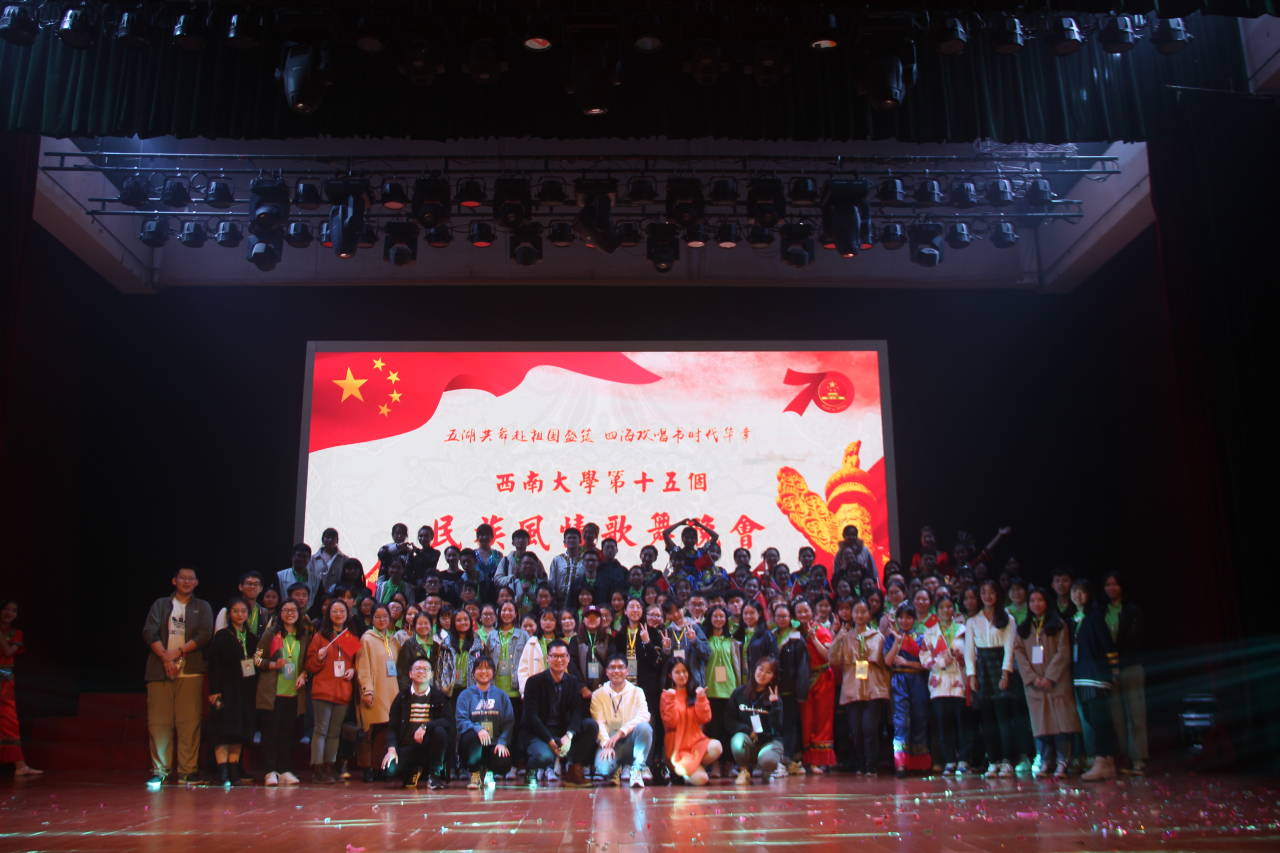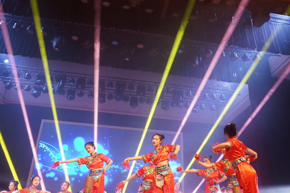 潺潺流水间的苗乐悠扬,舞步翩翩,我们望见水姑娘的柔情;沃野千里,骏马飞驰,襟带相贴,我们感触到蒙古族的豪迈;揺手错步,铜铃叮当,眼波盈盈中我们看到乌孜别克族热情的目光;壮锦刺绣民族希望,彝族跳弦欢庆祖国华诞;质朴藏民手捧哈达情满原,各族同胞载歌载舞礼赞祖国富强。流光溢彩的舞台,婀娜多姿的身段,余音绕梁的曲子,共同搭构了一幅民族风情尽情绽放的斑斓画卷。民族风情晚会以无限魅力深深感染到了在场的每一个人,强有力地激发了大家的爱国意识,进一步弘扬了民族团结精神。