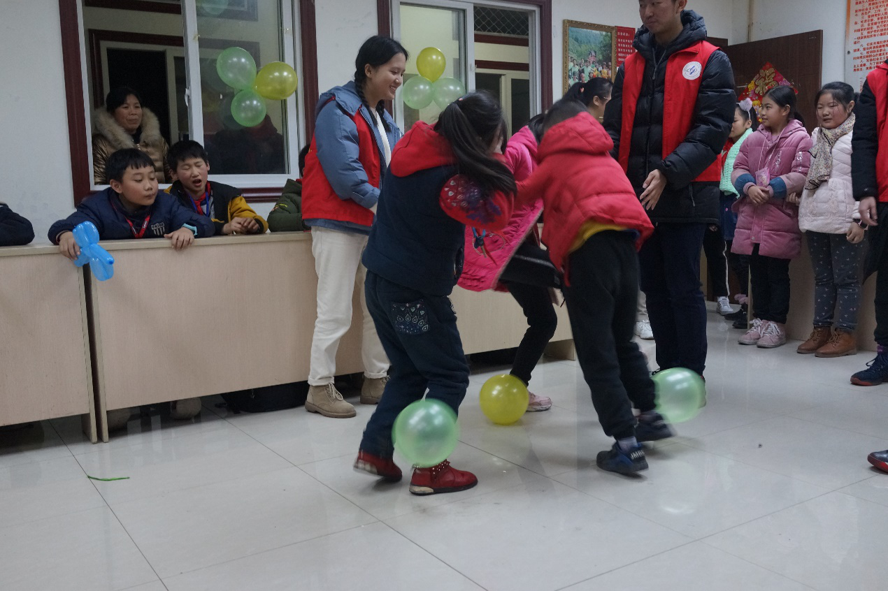 下面就是小朋友们最期待的游戏环节了,猜猜看、传项圈、踩气球各项游戏小朋友们都表现得十分活跃。游戏环节结束后,小朋友们仍意犹未尽,不停追问志愿者们是否还有游戏。