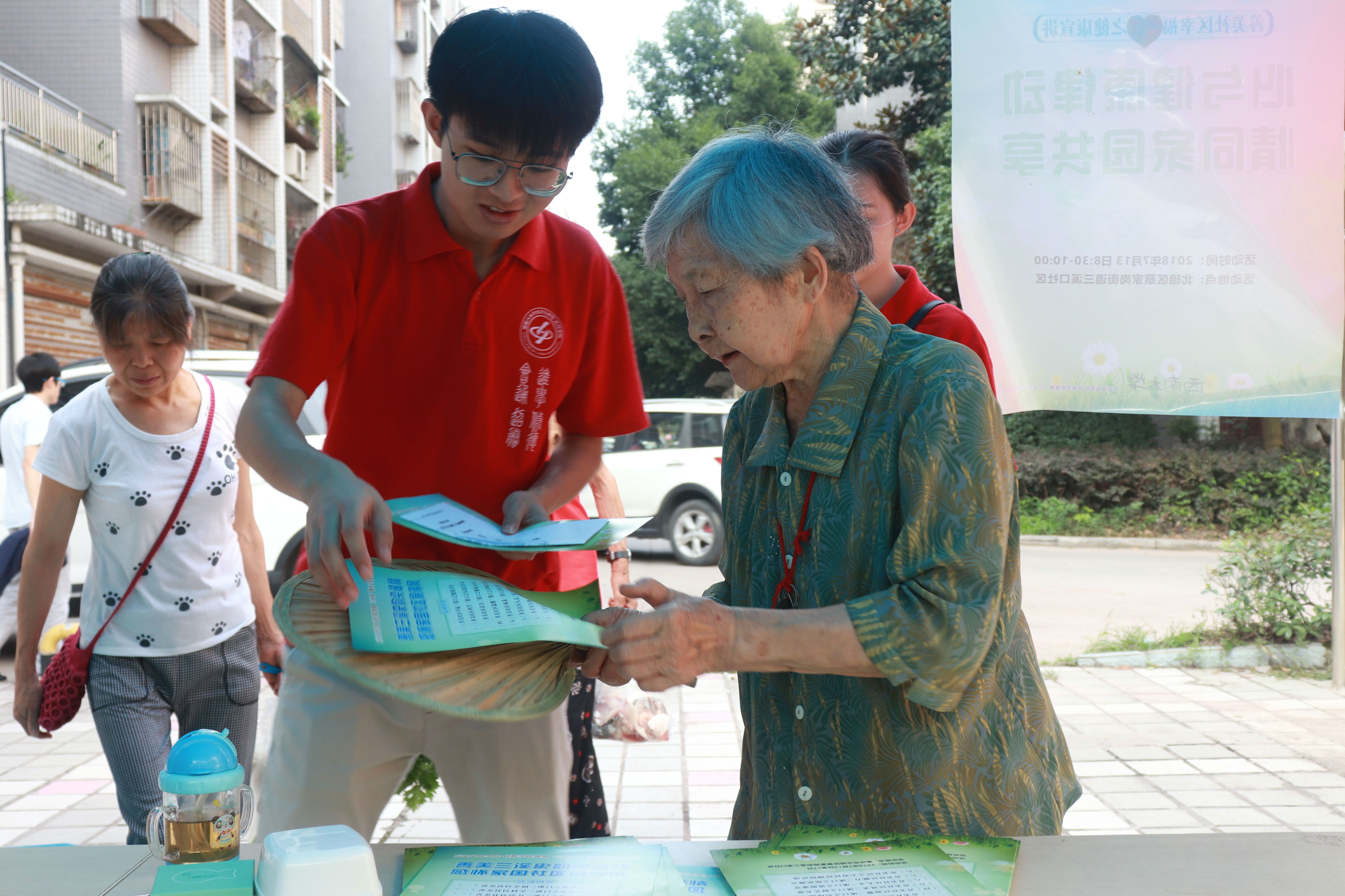 今天亦是历史文化学院 民族学院暑期三下乡活动的第一天,这令一大早就开始准备今天的三场活动的志愿者们十分兴奋。在对社区内外进行布置后,上午8点30分左右,第一场“健康宣讲”活动迎来了第一批参与者——社区的老人们。志愿者们对老人们依次进行了免费体检——包括称体重、量血压等,三溪口社区的老人们虽然看起来已经稍年迈,但是身体状态非常好,不少老人还坐在伞棚内同志愿者高兴地交谈。体检结束后,志愿者引着老人们走进了教室,进行健康主题宣讲的志愿者已经在准备好进行宣讲。宣讲组的杨晶晶、彭田瑞云依次进行如何预防夏季疾病、食品安全、垃圾分类等问题的讲解,认真听着宣讲的老人们,时而点头称是,时而与身边的老朋友交谈。随之又进行了第二场“反迷信活动”宣讲。面对一些封建迷信信息,老人们常常深信不疑,因而无法分辨其中一些诈骗活动,以此为点,志愿者谢康、程方闻结合亲身经历,又援引事例,对在场的老人们进行了反对迷信诈骗思想的宣传。活动结束后,志愿者们带来了抽奖活动,现场的气氛再一次升上高潮。
