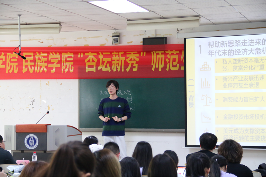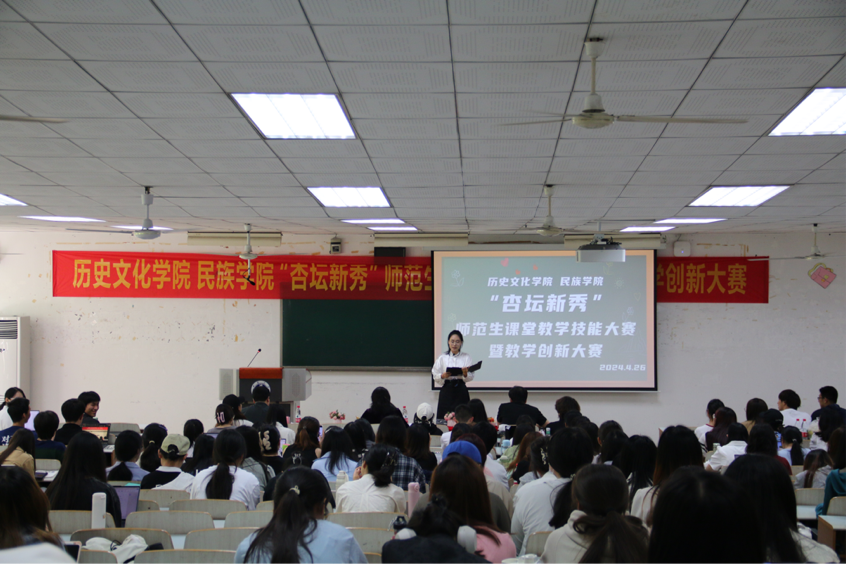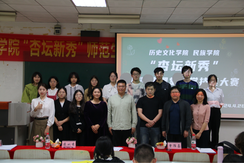 为加强对公费师范生教学核心技能的训练,进一步提升师范生课堂教学技能,为学校第十六届师范生课堂教学技能大赛选拔苗子,4月26日下午,历史文化学院 民族学院在十教301举行“杏坛新秀”师范生课堂教学技能大赛暨教学创新大赛。本次大赛主要面向2022级公费师范生,经过对前期50多位参赛选手提交的教学视频的初选初赛,遴选出12位选手进入复赛。大赛邀请到教师教育学院袁从秀、历史文化学院王伟宏、曾潍嘉三位老师担任评委。学院副院长陈永亮、党委副书记张静出席本次比赛。