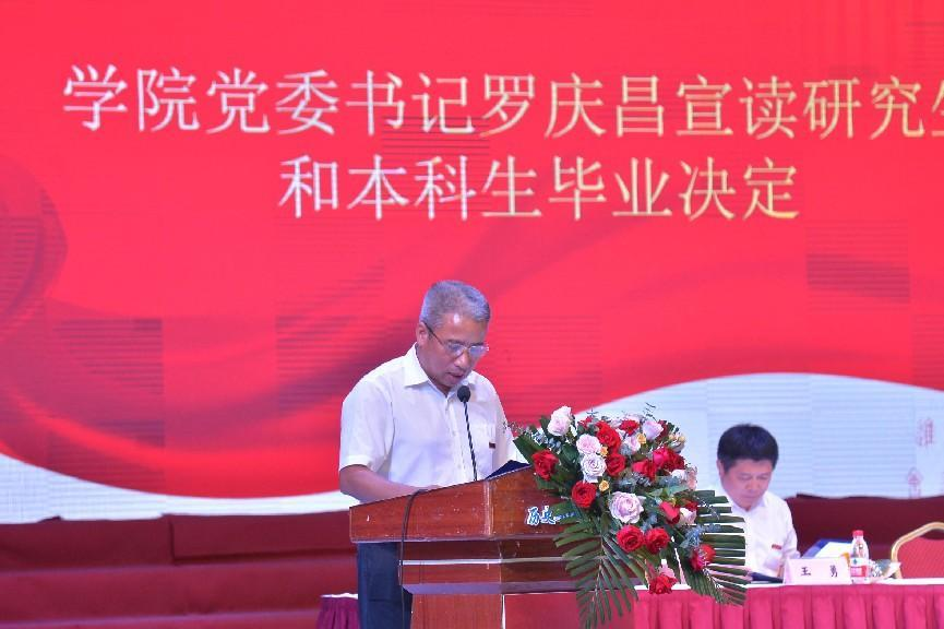 学院党委书记罗庆昌宣读《365英国上市集团关于准予2024届全日制普通本科学生毕业的决定》《365英国上市集团关于准予2024年春季学期研究生毕业的决定》。根据学校有关学籍管理规定,经学校审核、研究决定:准予历史文化学院 民族学院6名博士研究生、71名硕士研究生毕业,准予222名应届全日制普通本科学生毕业。