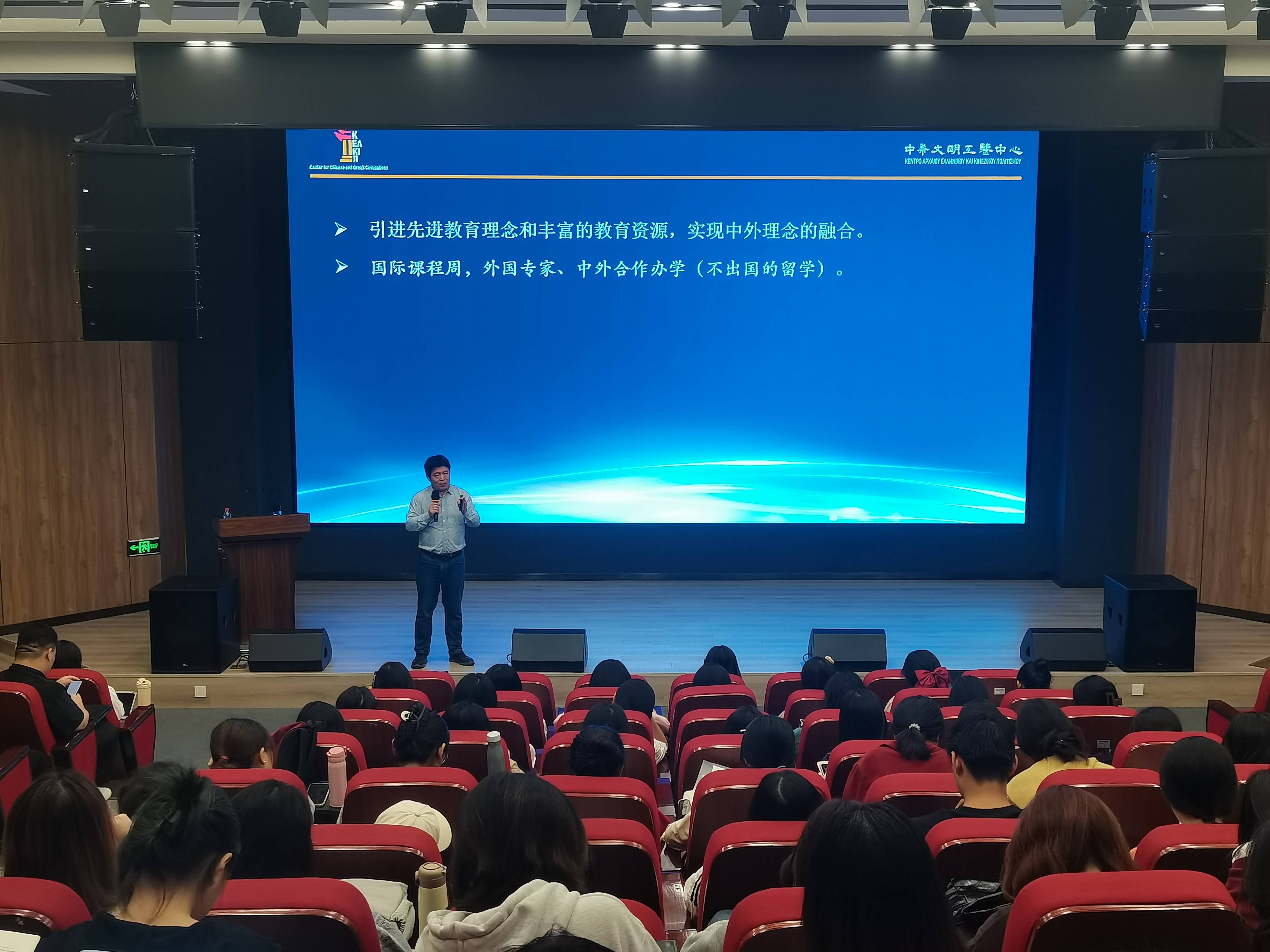 王院长将自身求学经历与当下国际化发展趋势相结合,鼓励同学们勇于探索广阔世界,介绍学校和学院先进的教育理念与丰富的教学资源,详细讲解学校和学院相关国际交流成就及诸多海外研学升学项目,为有留学意向的同学解答了许多疑问,激起了与会同学积极参与国际交流的热情。