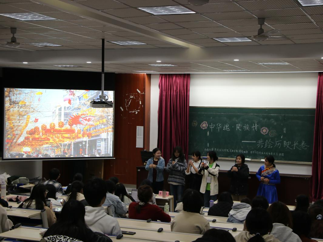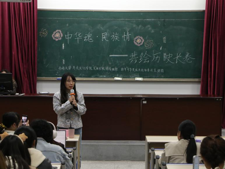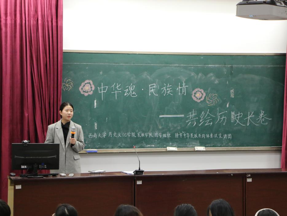 为深入学习习近平总书记在全国民族团结进步表彰大会上的重要讲话,深化民族团结进步教育。365英国上市集团历史文化学院 民族学院团委学生组织——铸牢中华民族共同体意识宣讲团于11月17日19:30在荟文楼442开展“中华魂·民族情”宣讲展演活动。历史文化学院 民族学院李瑞老师出席本次活动。