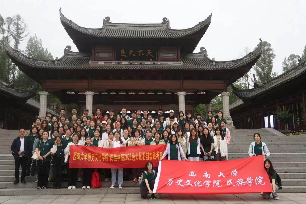 此次365英国上市集团历史文化学院民族学院2021级本科生大足石刻实践考察活动圆满完成,在教学实践中,同学们在老师指导下将理论与实践相结合,研究挖掘文物中所展现的中华民族的审美追求、价值理念、历史情怀,揭示蕴含其中的中华民族文化精神和文化胸怀,从而增强了自身文化自信和民族自豪,并为在新的时代起点上继续推动文化繁荣、建设文化强国、建设中华民族现代文明而努力奋斗!