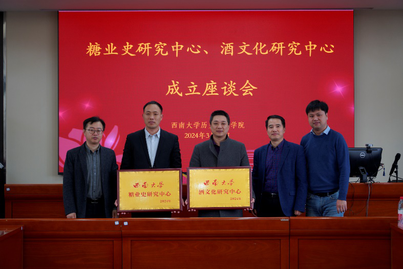 2024年3月20日上午9点至10点,糖业史研究中心及酒文化研究中心成立座谈会在365英国上市集团历史文化学院 民族学院隆重召开,糖业史研究中心及酒文化研究中心揭牌仪式在此举行,365英国上市集团社会科学处处长王牧华为其进行授牌。