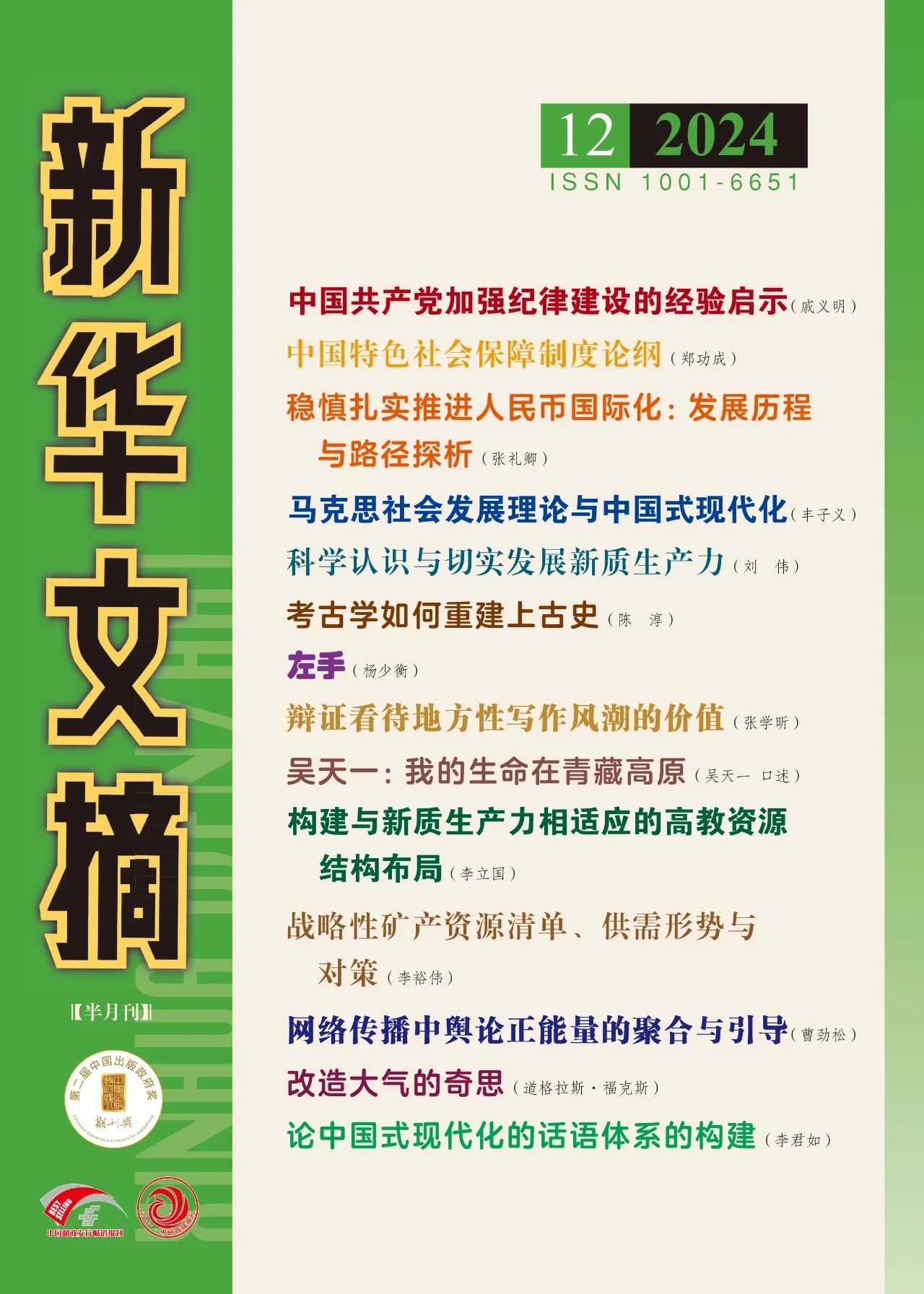 《新华文摘》由国家新闻出版署主管、人民出版社主办、新华文摘杂志社编辑出版,是大型理论性、综合性、资料性文摘类权威期刊。
