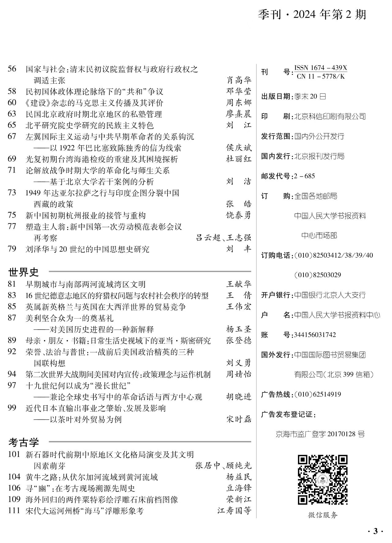 学院王伟宏副教授的学术论文《英属新英格兰与英国在大西洋世界的贸易竞争》被人大复印资料《历史学》2024年第2期全文转载。