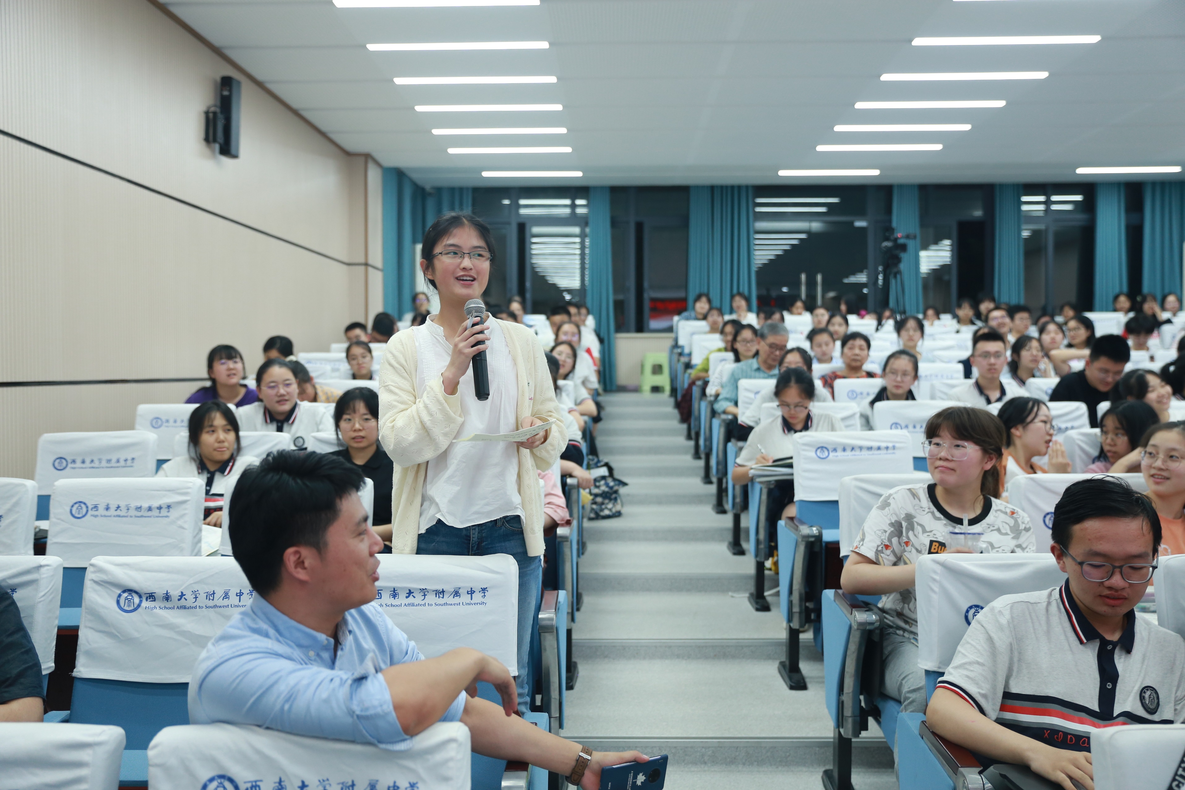 黎老师二十多年前从附中走向广阔世界,如今,以老师和学长的身份再次回到附中,老师幽默有趣的自我介绍和附中求学经历,拉近了与大家的心理距离,讲座气氛高涨。