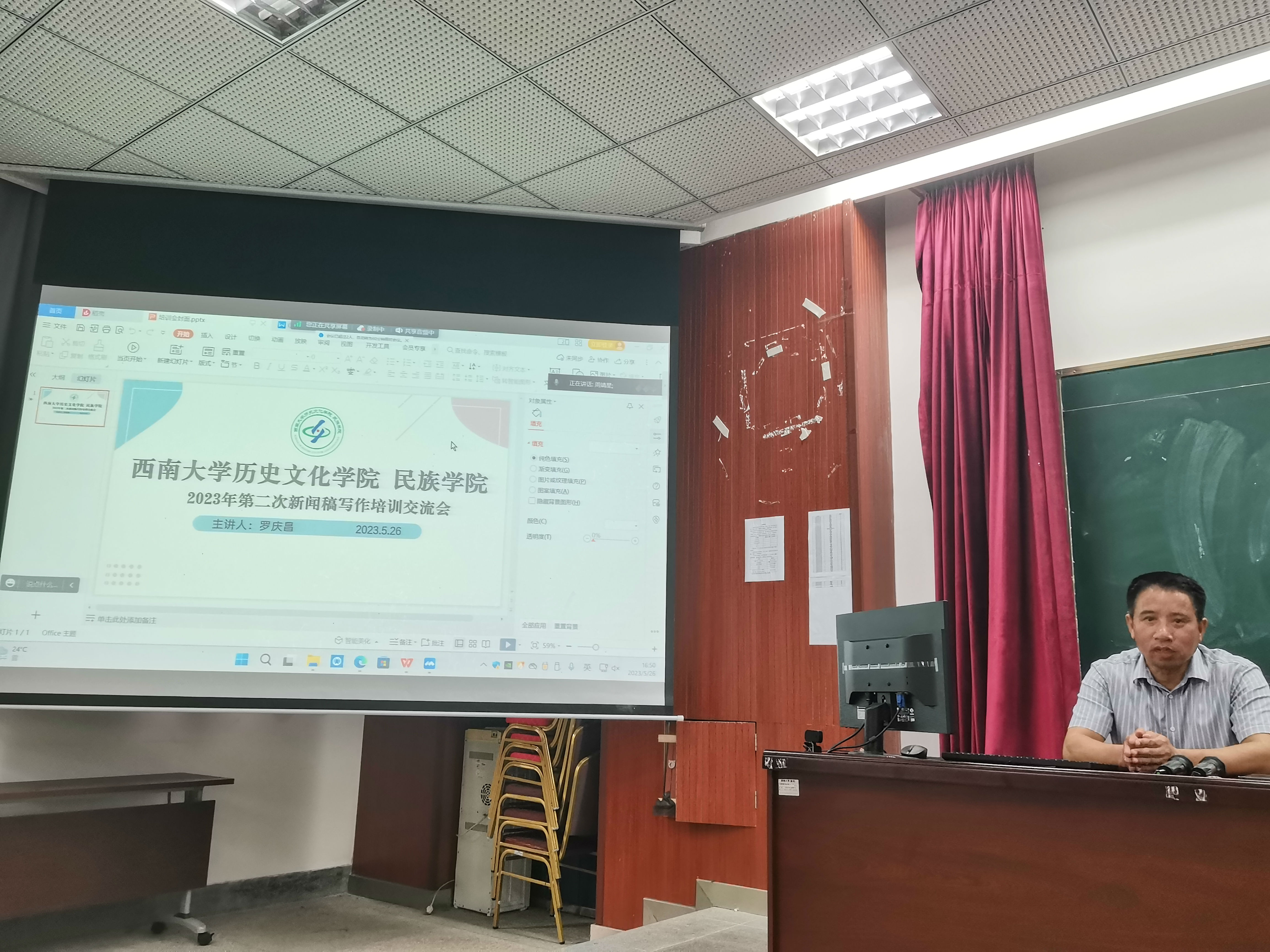 为提升学生观察事物、价值审美和文字写作能力与素养,5月26日下午,历史文化学院 民族学院在第九教学楼442教室举办第二次新闻写作专题培训。本次培训由学院党委书记罗庆昌主讲,历史文化学院、民族学院学生新闻组、各支部支委、团委、学生会相关部门人员参加学习培训。