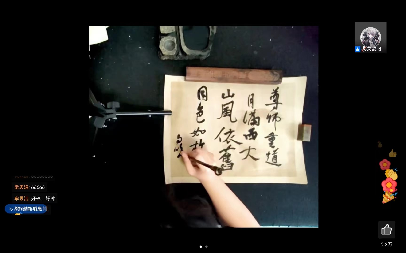 狼毫笔,镇纸尺,一笔一画书年华。田雨欣同学的作品《书法贺双节》在感谢师恩厚重的同时,也将晚会迎入中篇“月华流照桃李情”。2022级本科生周靖星同学的歌曲《橄榄树》唱出了对学院老师的一片真情;同级新生胡韵晗同学的歌曲《这世界那么多人》,又用温柔的歌声让晚会氛围又添了一分温情。