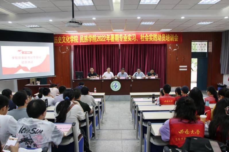 7月1日上午,学院2022年暑期专业实习、社会实践动员培训会在9教442召开。学院党委书记罗庆昌,党委副书记罗朝斌,副院长李晶,实习指导老师曾现江、张新超,团委书记李立,本科2019级辅导员高倩,本科2019级历史学、民族学专业全体学生,学院暑期社会实践院队、小分队全体成员参加本次会议。学院团委书记李立主持本次会议。