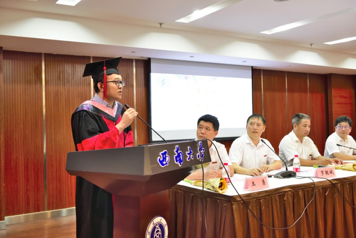 毕业生代表、博士研究生李杰同学结合自己在学院硕博六年的求学经历,表达了对学院、老师和同学们的感激。他分享了自己对如何处理好个人欲求和内心修为之间的矛盾、平衡好现实追求与价值操守之间的冲突等重要问题的思考,代表全体毕业生提出了坚守底线,常怀敬畏之心和仁厚之情的自我要求。
