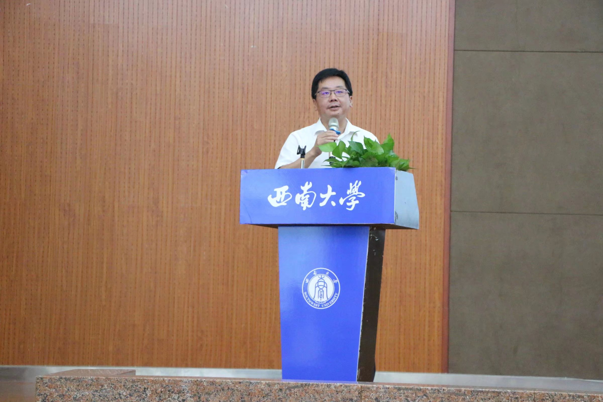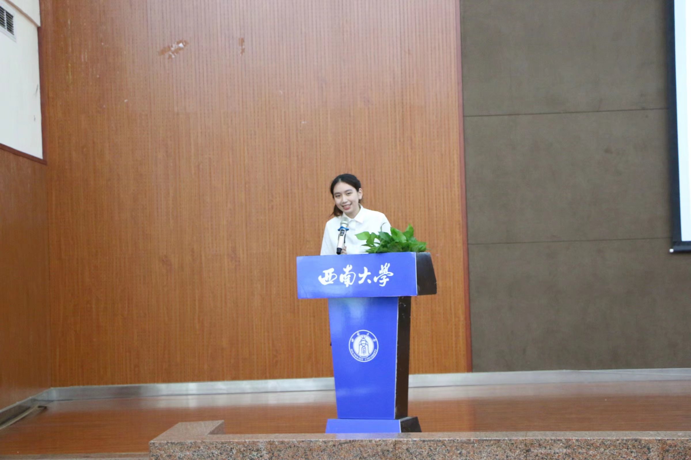 伴随庄严的国歌声,新生见面会正式拉开序幕。首先,学院老生代表2020级硕士研究生李佳庚同学代表老生致欢迎词。他结合自己入校一年的经历,向新同学们分享了他的收获和感想。他在感谢学校和学院细致入微的培养教育的同时,也号召大家要不息奋斗、砥砺前行,要立足家国情怀,肩负时代担当,面对选择时要坚守初心,发挥所长。