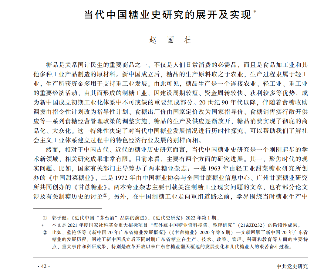喜讯|学院赵国壮教授撰写的论文《当代中国糖业史研究的展开及实现》在《中共党史研究》2024年第1期公开发表。