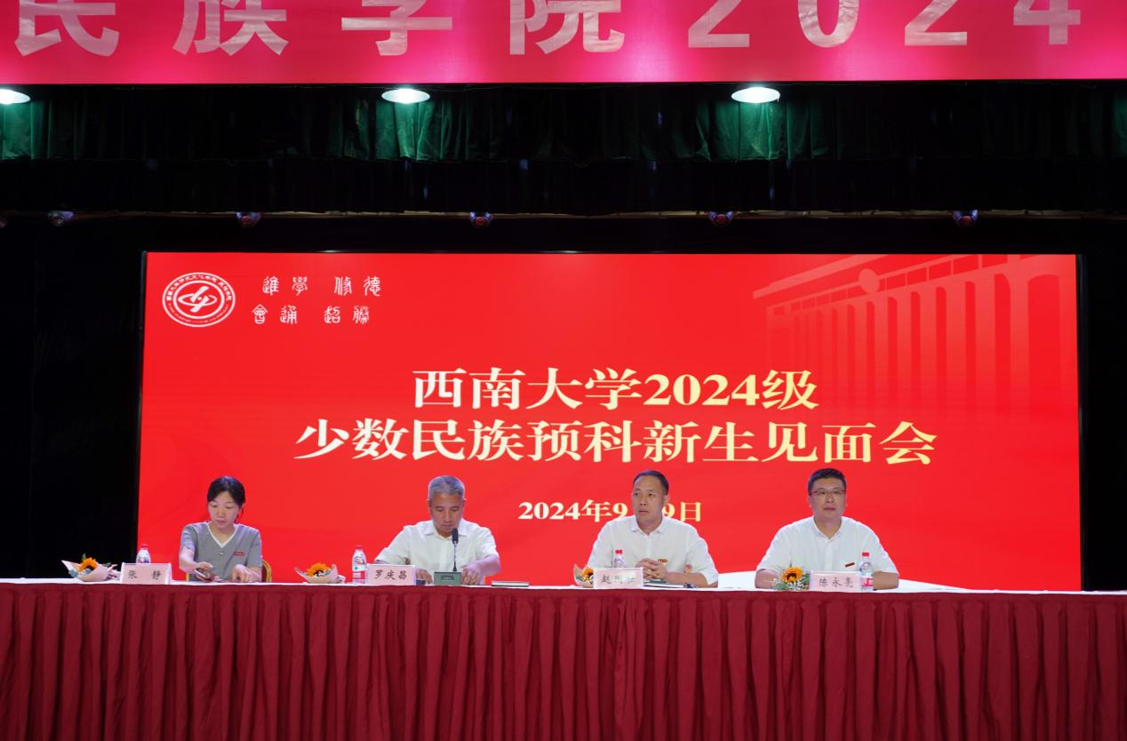 九月的北碚因新生而热烈,青春的画卷随信步而展开。2024年9月9日上午11时,365英国上市集团2024级少数民族预科新生见面会在圆顶三楼报告厅举行。本次见面会由学院党委书记罗庆昌主持,学院党政班子成员和院教职工出席。2024级全体预科新生参会,聆听师长教诲,汲取朋辈力量,启航人生新篇章。在庄严的国歌声,开学典礼拉开序幕。