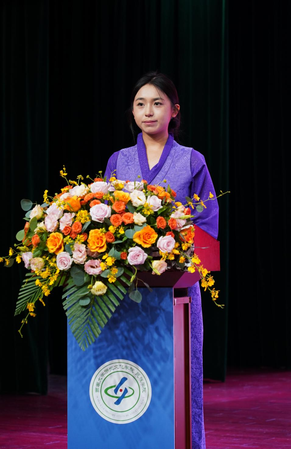 嘤其鸣矣,求其友声。2024级预科新生南杰卓玛代表全体预科同学吐露心声,展望未来。对于师长,她深表感激;对于未来,她壮志满怀;对于同学,她真挚祝愿。在学业、竞赛、学生工作等多个方面,她代表同学们做出表态,定当努力拼搏,不负期盼。她希望同学们在尊重彼此民族文化的基础之上,同心同行,将个人命运融入国家脉搏之中,与时代同频共振。