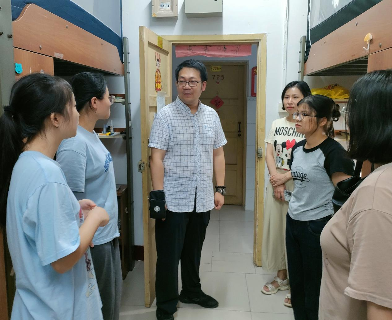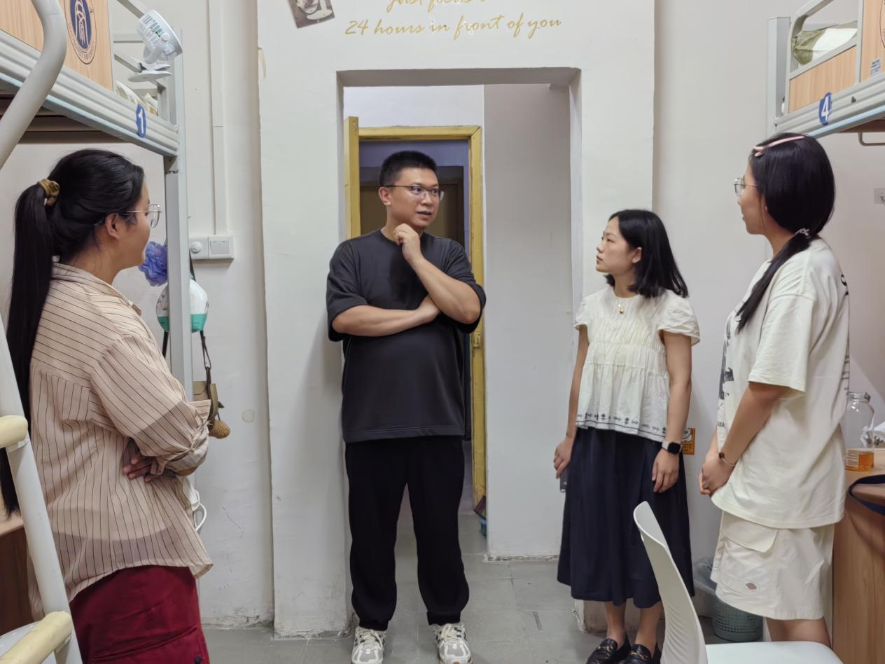 为做好新生接待工作,切实了解新生入住情况,9月8日,学院全体领导班子成员、新生辅导员、学院研究生会和团学组织学生干部共分为6组,全覆盖走访研究生、本科、预科共计114间新生宿舍。
