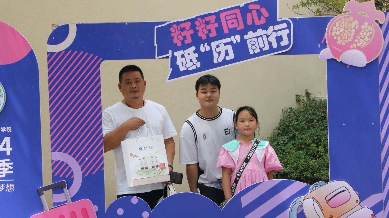 学院精心准备了拍照打卡板和独具学院特色的桁架,供新生和家长拍照留念。