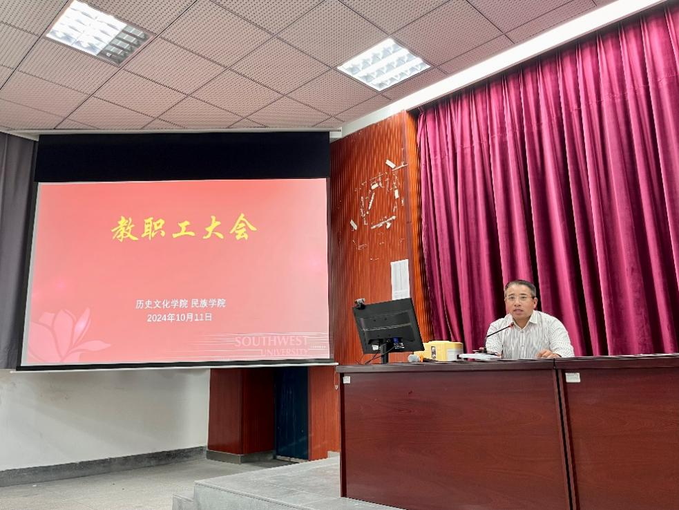 2024年10月11日下午,历史文化学院 民族学院在九教442教室开展十月份政治理论学习暨教职工大会。会议由学院党委书记罗庆昌主持,全体教职工参加。
