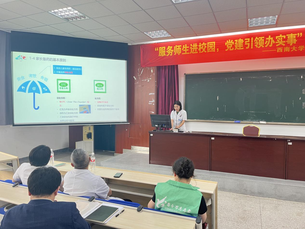 随后,医院药剂科主管药师郑先珍以《家庭安全用药须知》为题,解析常见用药误区,强调处方药规范使用的重要性;康复医学二科治疗部主任吴雪莲结合高校师生工作场景,讲授《警惕“学术颈椎”——颈椎养护秘籍》,从坐姿调整到日常保养提供系统建议;康复一科专科护士周若寒、成春梅、李乐还带领师生们学习了《舒缓颈椎操》,通过简单动作缓解肩颈疲劳,引得全场跟练互动。