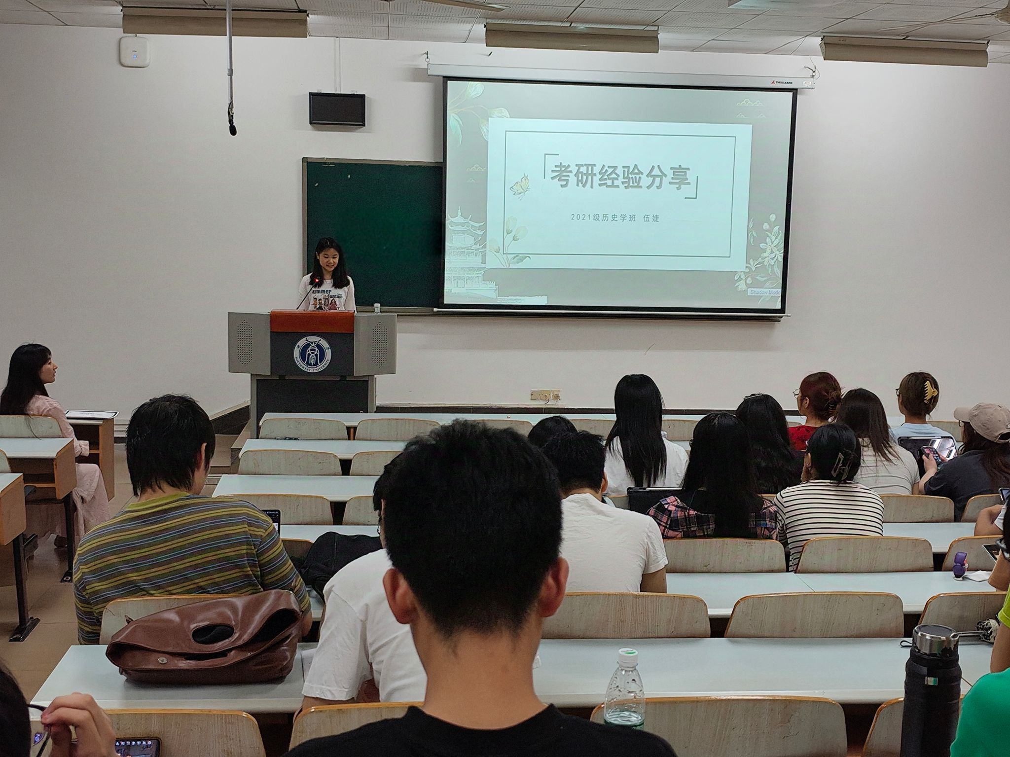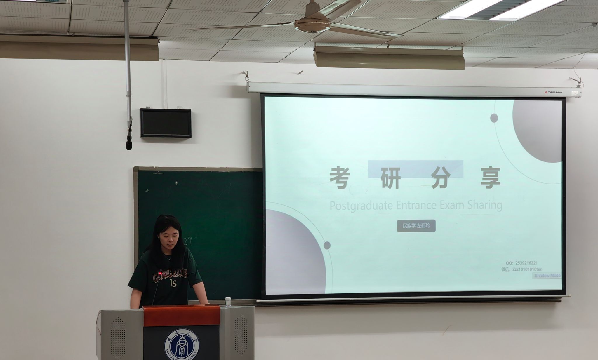 吴梦婷、左祎玲作为成功上岸本校的两位学姐,结合学院要求和自身经验分别向学弟学妹们分享了历史学、民族学考研本校的经验。围绕教辅教材、实用资源、学习方法、备考计划等各方面进行了分享交流。