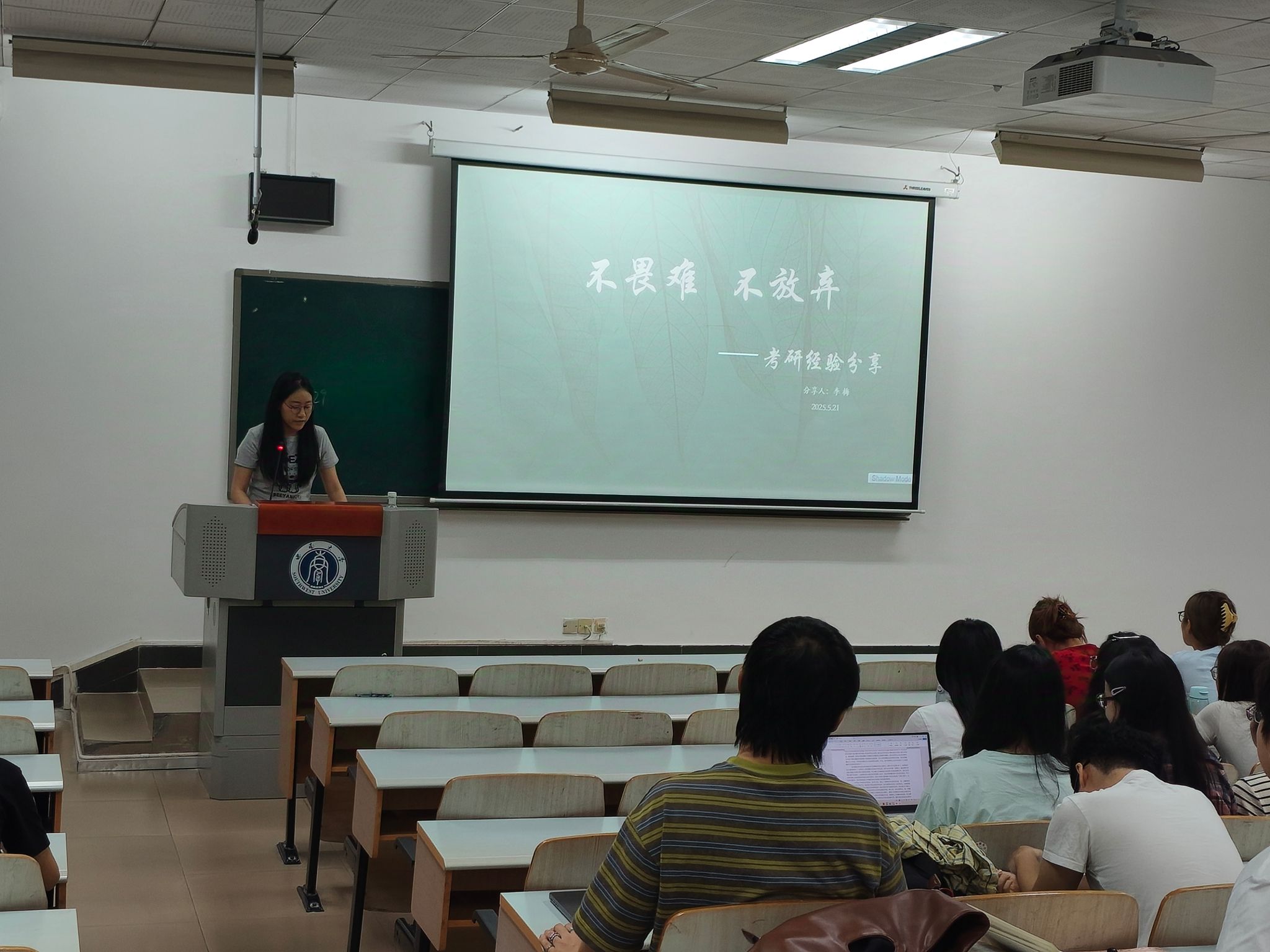 此外,各位学姐们也围绕升学考研中的心态调适提出建议,引导学弟学妹们在备考过程中保持身心健康和自信,关注自我学习效率,拒绝恶意比较和内卷内耗,劳逸结合,学会通过合理的方式疏解压力。
