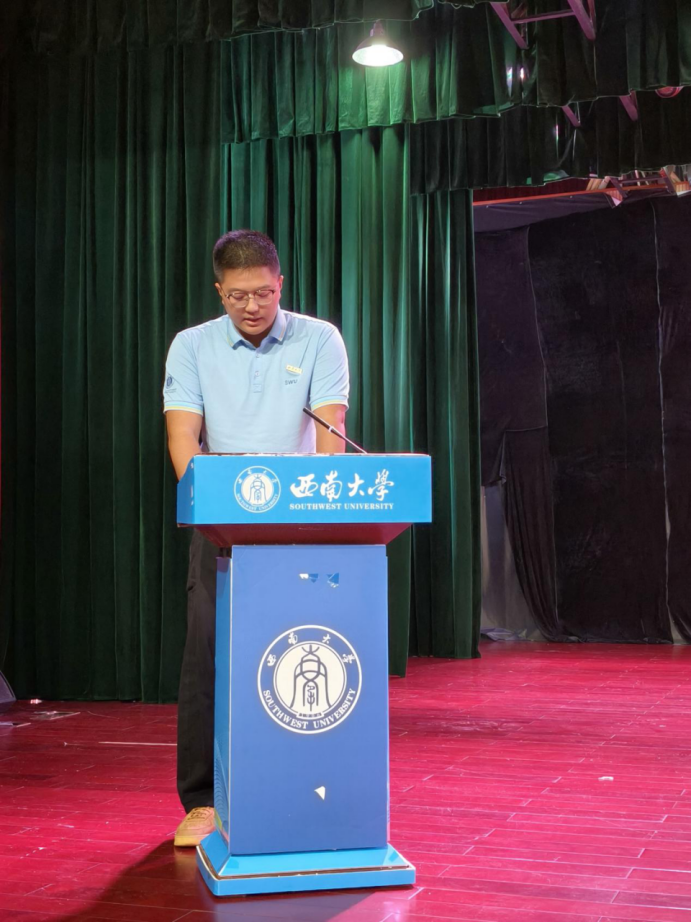 新生代表2025级本科王华宇同学以“三重向往”勾勒出青春的理想图景:扎根学问之壤、践行师者使命、心怀家国天下。站在新的历史起点,他号召全体同学为实现中国式现代化贡献青春力量。