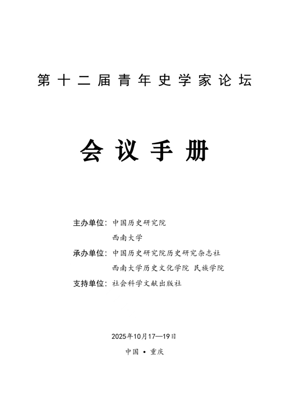 议程 | 第十二届青年史学家论坛